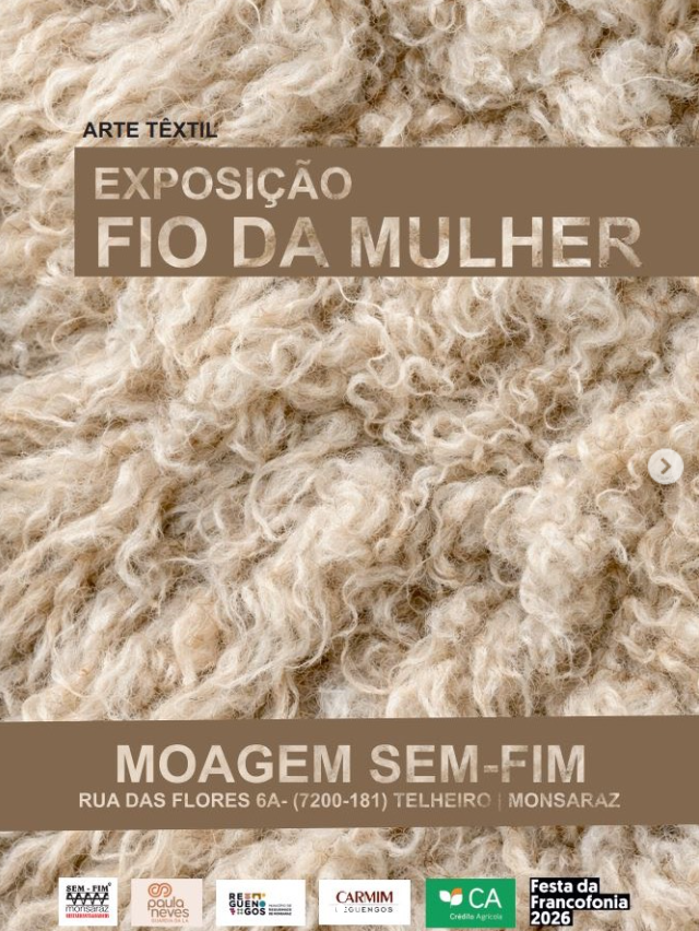 ✍️ FICHA TÉCNICA Organização: Paula Neves (Guardã da Lã) Coordenação: Mizette Nielsen Curadoria: Ana Maria Gonçalves Montagem: Equipa Sem-Fim Parceiros: Câmara Municipal de Reguengos de Monsaraz, Cooperativa Agrícola de Reguengos de Monsaraz, SEM-FIM, Caixa Agrícola
