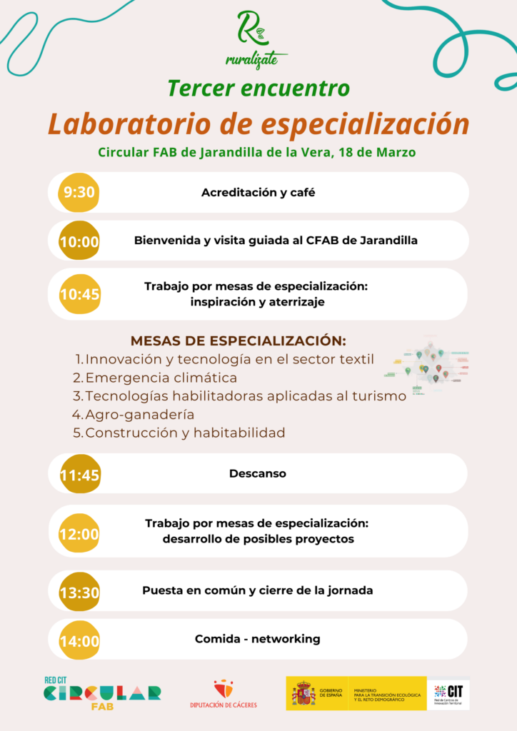🤝 Seguimos avanzando en el proceso de especialización de la Red CIT – Circular FAB de la provincia de Cáceres.