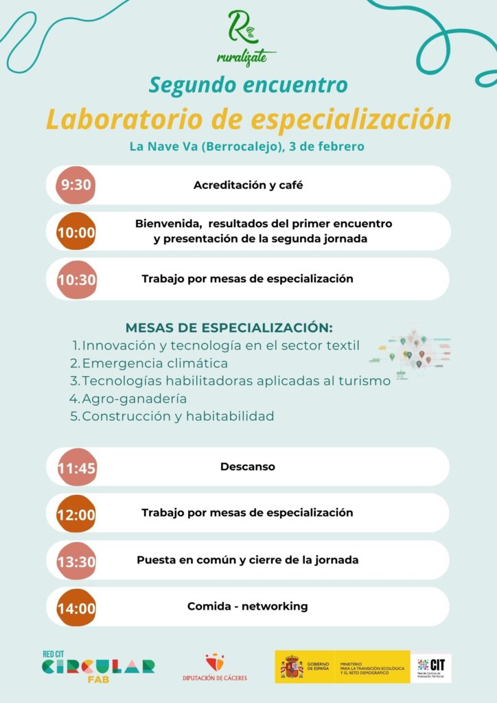 “Laboratorio de Especialización”, en el marco de la Estrategia de Especialización Inteligente para la transformación digital de la provincia de Cáceres, que se está desarrollando a través de la Red de Centros de Innovación Territorial “Circular FAB”.