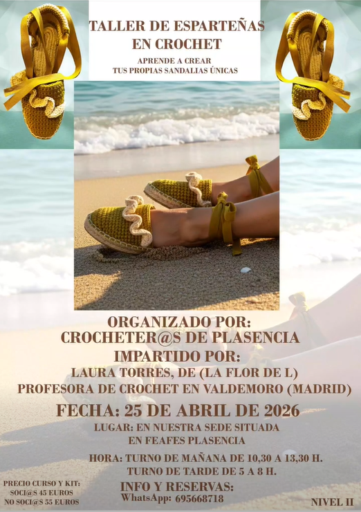 25abr10:30 am8:00 pmTaller de esparteñas en crochetAprende a crear tus propias sandalias únicas